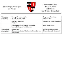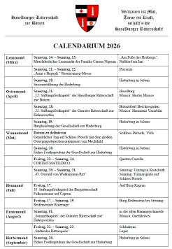 Hier findet Ihr unser aktuelles Calendarium. Weiters seht Ihr unseren Jahresplan mit übersichtlicher Darstellung unserer Kapitel, Feste und Fahren.